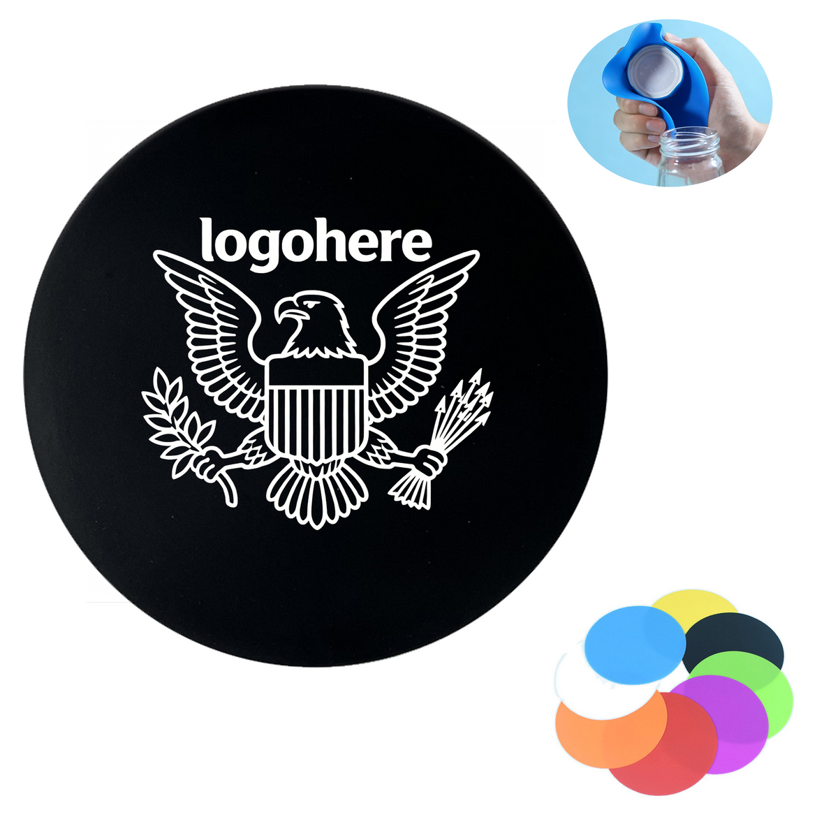 Additional InformationA versatile silicone coaster and jar opener in one.Size:4.9"*4.9" Pricing for 8000 pieces or more is based on sea shipping.