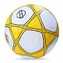 This official #5 soccer ball is built for performance and durability. It features a beautifully woven PVC holster and a tough rubber inner bladder for consistent bounce and shape retention. Perfect for promotional activities or team branding, it can be customized with your logo printed on the surface. The ball has an 8 1/2-inch diameter