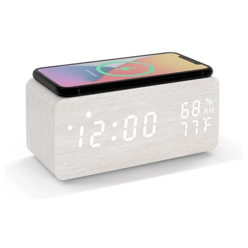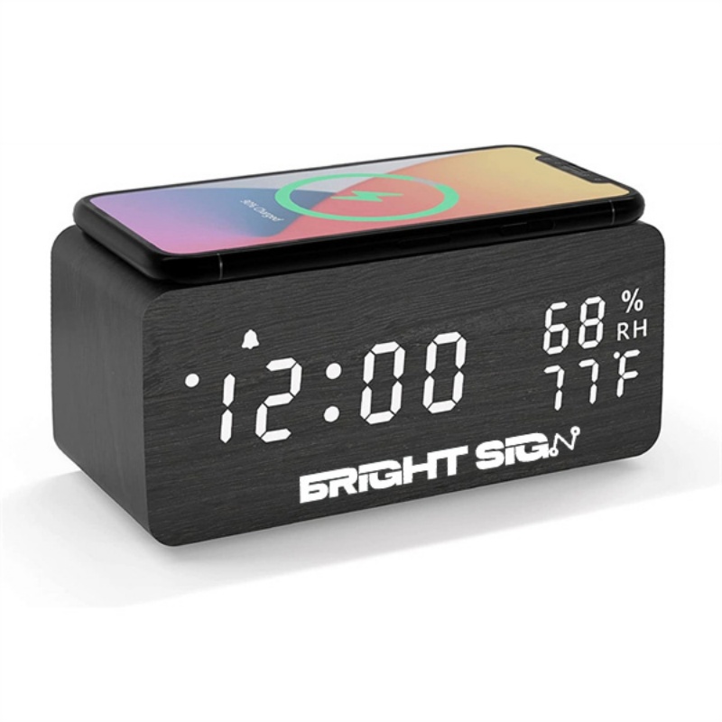 A stylish bedside alarm clock that doubles as a wireless charging pad — blending natural wood aesthetics with practical tech. Set multiple alarms with adjustable volume and brightness, enjoy a gentle wake option, and place a Qi-compatible phone on top for overnight charging. Runs on mains power with optional battery backup for travel or outages. Ideal for students, professionals, and gift programs that want a functional keepsake combining decor and convenience.