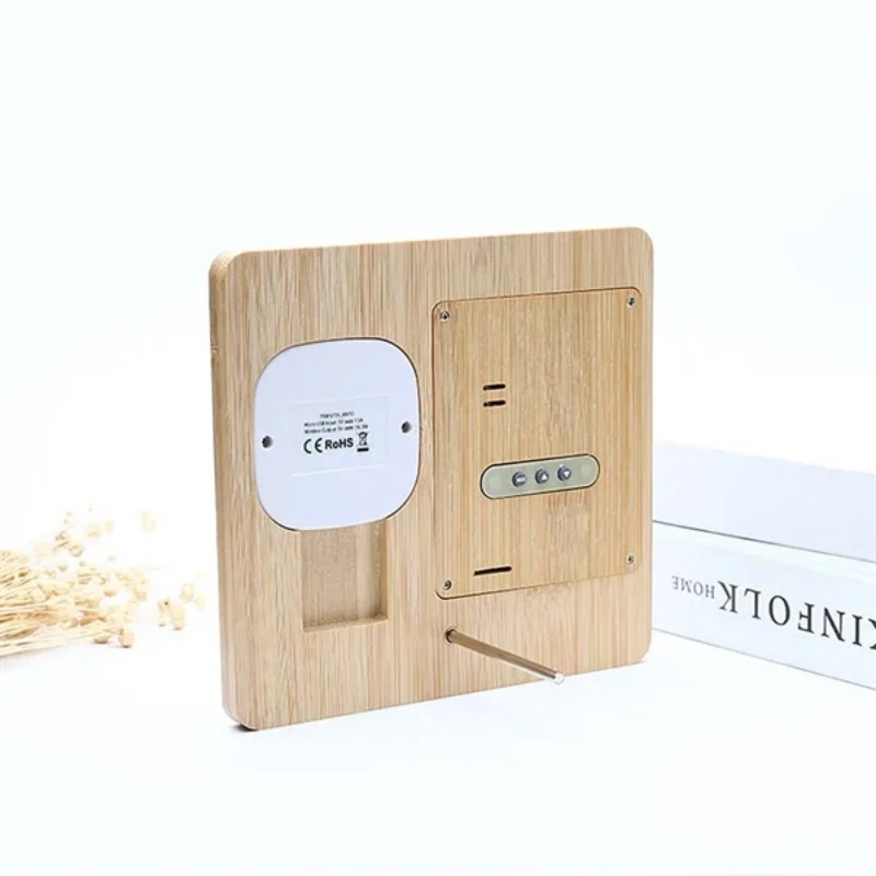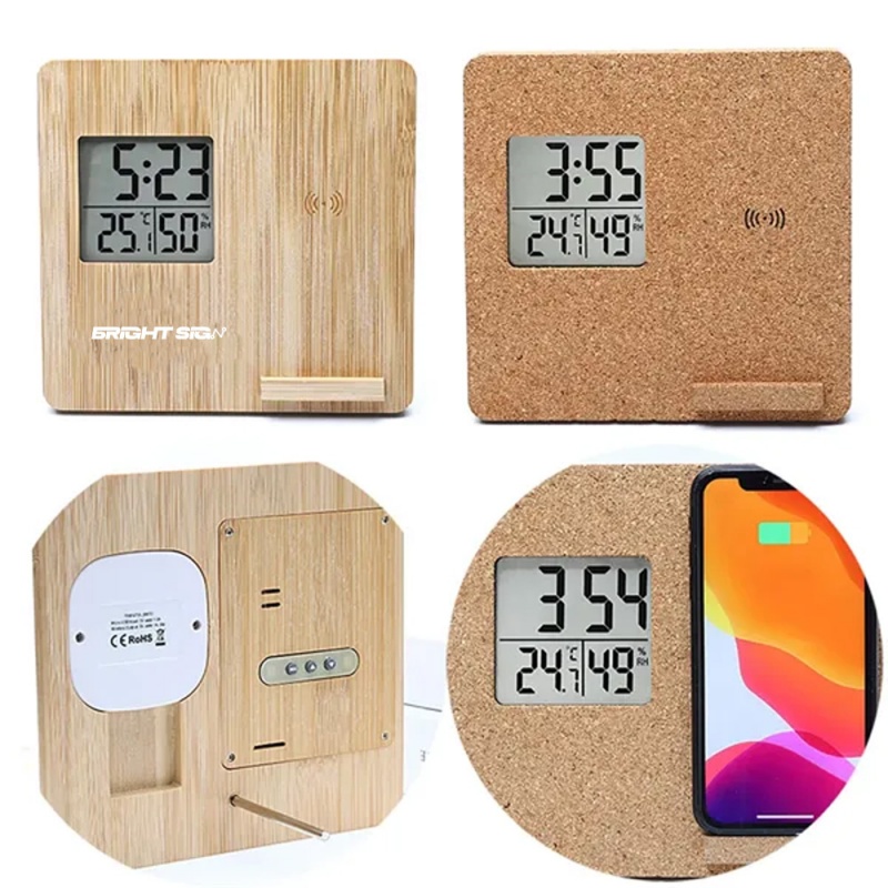 Elevate your home with the EcoSmart Weather Clock, a sleek fusion of functionality and modern design! Its crisp LCD screen delivers real-time temperature, humidity, time, and date-all in high-precision clarity with adjustable backlighting. Crafted from sustainable bamboo or cork wood, this clock boasts durability, eco-friendliness, and a natural wood-grain finish. Enjoy versatile placement options: stand it upright, hang it, or magnetically attach it to metal surfaces. The built-in phone stand doubles as a wireless charging pad-perfect for keeping devices powered while you check the weather. Customize alarms, snooze, and hourly chimes for seamless daily routines. A stylish, practical centerpiece for any room!